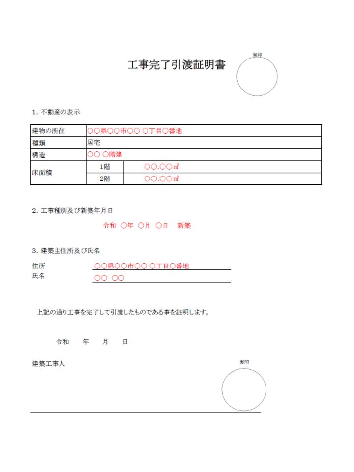 工事引渡書については、ハウスメーカー側が毎回作成しており様式を持っているはずなので、「いつも出している工事引渡書をください」と依頼しましょう。