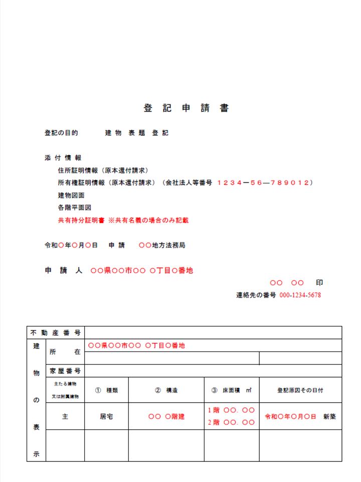 建物表題登記申請