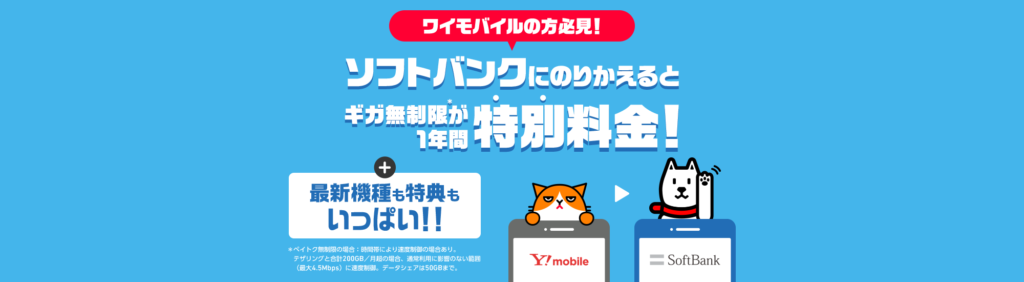 ワイモバイルからソフトバンクへの乗り換え特典とは?