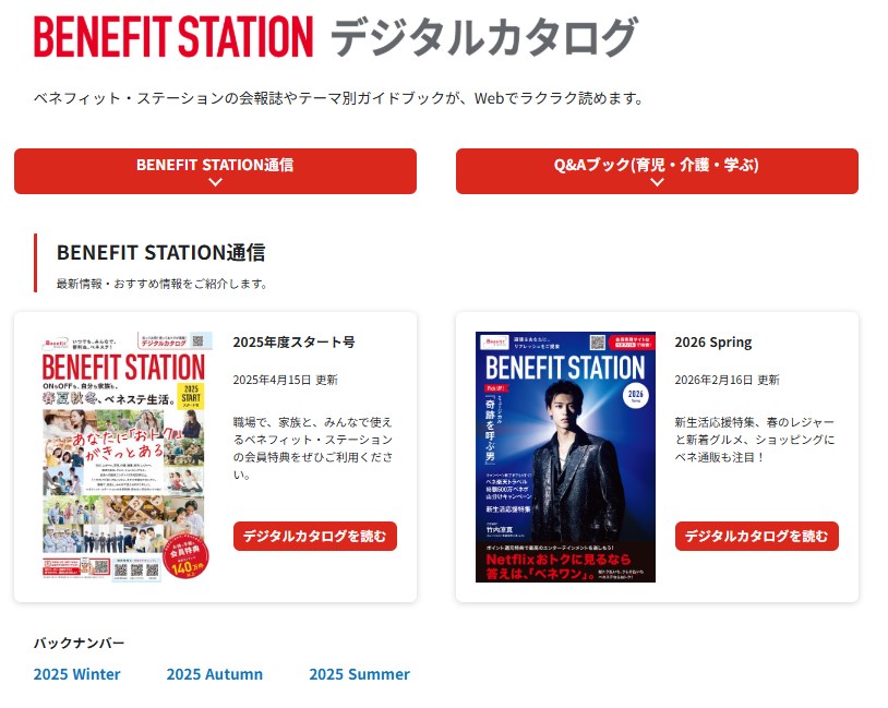 ベネフィットステーションで公開されているサービスを紹介するデジタルカタログは、以前は2ヶ月毎くらいの頻度で発行されていた気もしますが、いつのまにか四半期毎に1回の発行となりました。